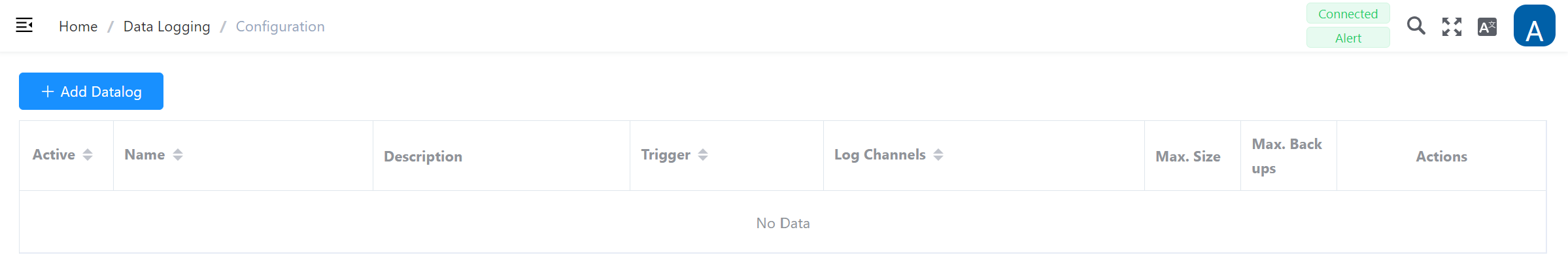 Clicking on Configuration opens the main page of this function. Once log tasks have been created, they appear in a list view. The tasks can be subsequently edited at any time.
