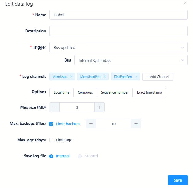 | Description | Optional; any description can be added here, including more detailed information about the data log. |
