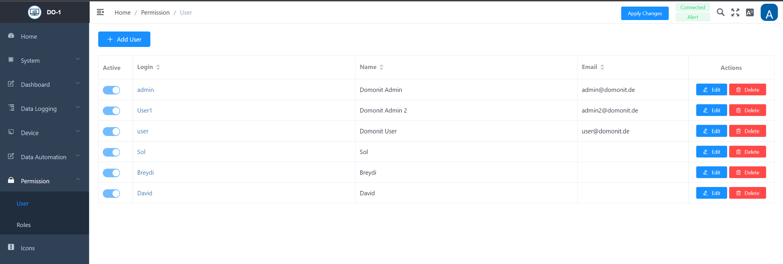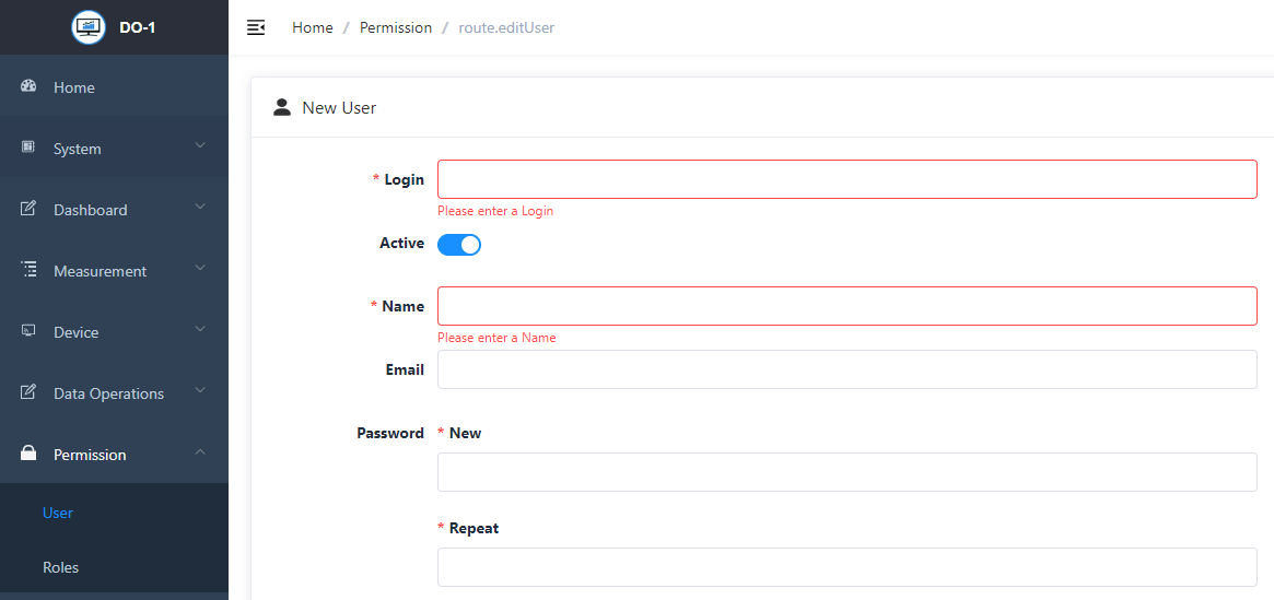 This chapter explains the user and role creation functions. These offer the option of creating additional users and corresponding roles. This can only be done by the respective administrator of the DO-1 and is not available in the normal user view.