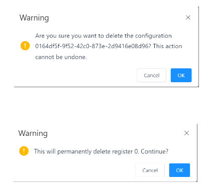 When deleting an entry in the various functions of the DO-1, a warning message appears which must be confirmed in order to permanently delete the entry. If this message is not confirmed, the entry is retained.