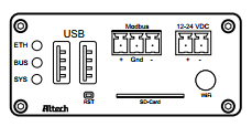 - LED BUS: Flashes green in time with the bus cycle time of the internal Modbus.